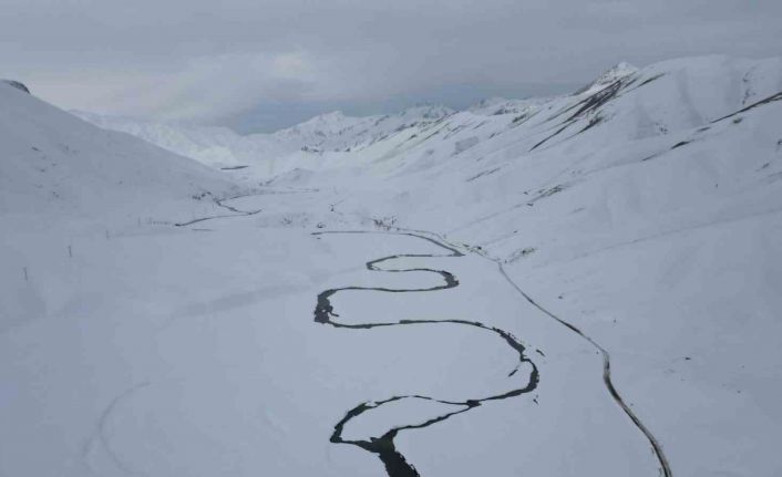 Şırnak’ın Beytüşşebap ilçesine bağlı Yeşilöz Faraşin Yaylası’nda kilometrelerce uzanan dev menderesler, yılın 4 ayı buz pistine dönüyor. Havaların ısınmasıyla çözülen dere yatağı dron ile görüntülendi. Beyaz gelinliğini giyen yaylada yılan gibi kıvrılan dere yatağı görsel şölen oluşturdu. Kar kalınlığının 3 metreyi bulduğu yaylada havaların ısınmasıyla her geçen gün yeni dere yatakları ortaya çıkıyor.