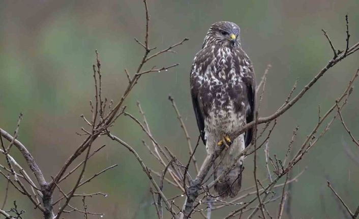 Bursalı doğa fotoğrafçısı Ömer Ahu, ormanlık alana kurduğu çadır güme içerisinde gizlenerek şahin ve çakal gibi yaban hayvanlarını görüntüledi.