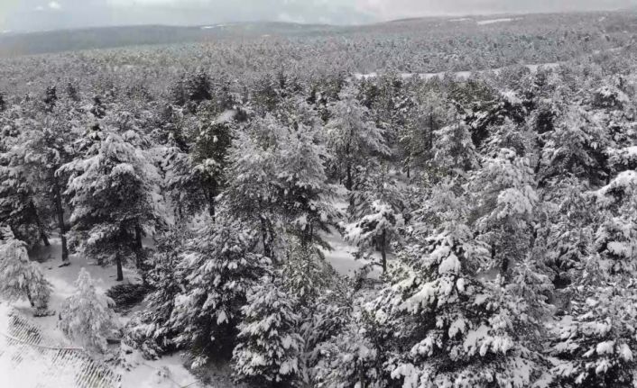 Kar yağışının durması ile birlikte şehirde doğa beyaza bürünürken, ağaçların üzeri de karla kaplandı. Adeta görsel bir şölen oluşturan beyaz örtülü çam ağaçları, görenlerde hayranlık uyandırdı.