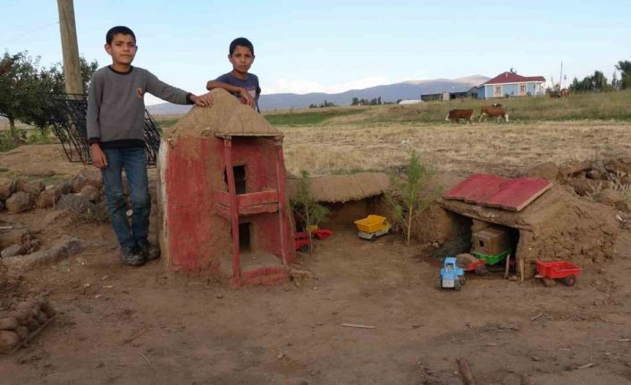 Van’ın Erciş ilçesinde yaşları küçük ama hayalleri büyük olan 2 çocuk, çamurdan minyatür evler yaparak hallerini gerçekleştiriyor.