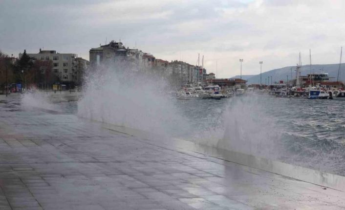 Çanakkale’de poyraz fırtınası nedeniyle oluşan dev dalgalar sahili dövdü