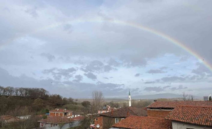 Çanakkale’nin Çan ilçesine bağlı Küçükpaşa köyünde sabah saatlerinde gökyüzünde oluşan gökkuşağı büyüledi.