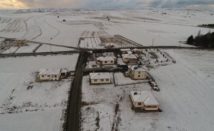 Bir süredir sıcak havanın etkili olduğu Çankırı’nın bazı ilçelerinde sabah itibarıyla kar yağışı kendisini gösterdi. Termometrelerin gece saatlerinde sıfırın altına düştüğü kentte Ilgaz, Korgun, Bayramören, Atkaracalar ve Kurşunlu ilçeleri kar yağışı sonrasında beyaza büründü. Çatılar ve etraf beyaz örtüyle kaplanırken kar yağışı da vatandaşları sevindirdi. Atkaracalar ilçesinde beyaz örtüyü gören Resul Öngel isimli vatandaş da bu anları drone ile havadan görüntüledi.