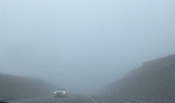 Çankırı’da etkili olan yoğun sis yüksek rakımlı bölgelerde görüş mesafesini 20 metreye kadar düşürdü.
