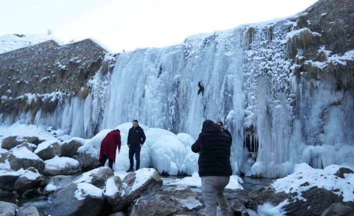 Muş’ta hava sıcaklığının sıfırın altında 15 dereceye kadar düşmesiyle Çar Çayı üzerinde bulunan şelale dondu. Metrelerce uzunluğundaki buz sarkıtları doğaseverlerin uğrak mekanı oldu.