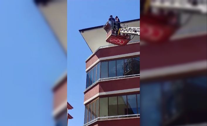 Çatıda ipe dolanan Kırlangıç’ı itfaiye kurtardı