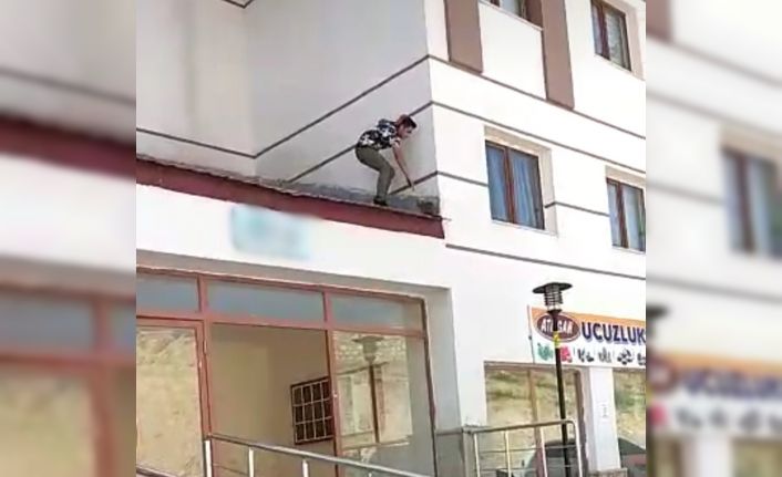 HAKKARİ (İHA) – Hakkari’nin Yüksekova ilçesinde bir binanın çatısında mahsur kalan kediyi, Erdem Ercan adlı genç yüksekten korkmasına rağmen çatıya çıkarak kurtardı.