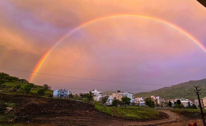 Diyarbakır’ın bu yıl en fazla yağış alan ilçelerinden Çermik’te, yağmur sonrası oluşan gökkuşağı, görsel bir şölen oluşturdu.