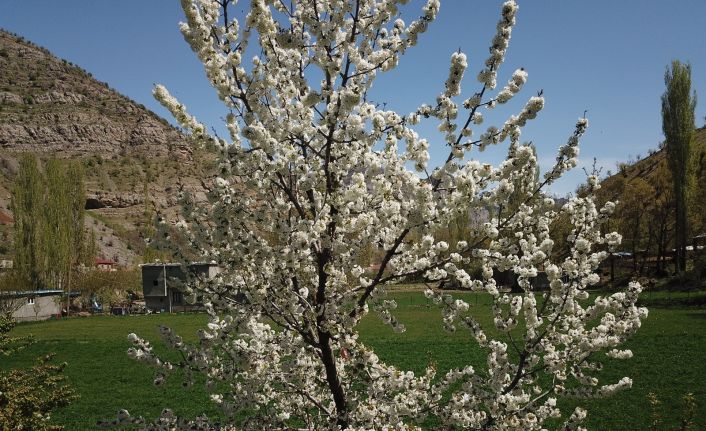 Şırnak’ın Beytüşşebap ilçesinde baharın gelişiyle beraber meyve ağaçları çiçek açtı. Havadan görüntülenen çiçekler kartpostallık görüntü oluşturdu.