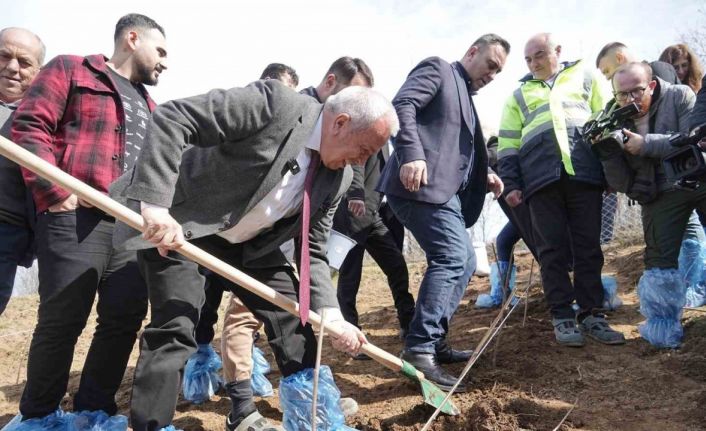 Bursa’da çiftçiyi tarıma teşvik etmek ve üretimi desteklemek hedefiyle Kadriye Mahallesi’nde 6 dekarlık alana ahududu dikildi.