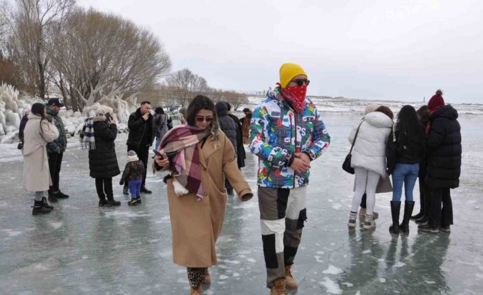Kayalıklara ve ağaçlara dalgaların vurmasıyla ortaya çıkan buz manzaralı ise vatandaşlardan yoğun ilgi görüyor. Buzların önünde fotoğraf çekilenler, halay çekenler, buzun üzerine oturanlar renkli görüntüler ortaya çıkardı. Yerli ve yabancı turistlerin yoğun ilgi gösterdiği Çıldır Gölü, yeni yılda da vatandaşlarla dolup taşıyor.