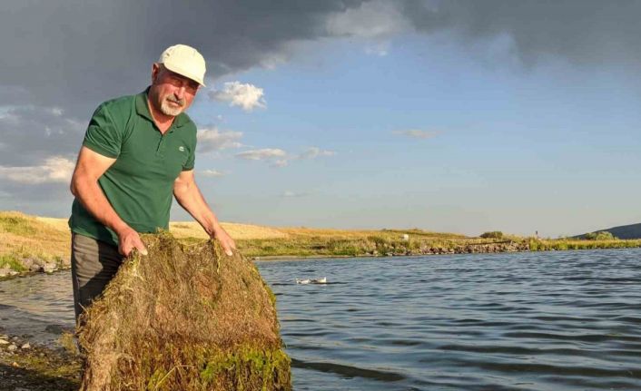 Ardahan’ın Çıldır ilçesindeki Çıldır Gölü’nde aşırı sıcaklar nedeniyle ortaya çıkan ve zehirli olduğu belirtilen alg yosunu, tehlike saçıyor.