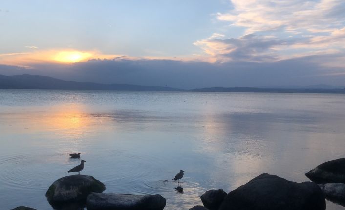 Doğu Anadolu’nun en büyük gölleri arasında yer alan Kars Çıldır Gölü’nde, gün batımında kartpostallık görüntüler ortaya çıktı.