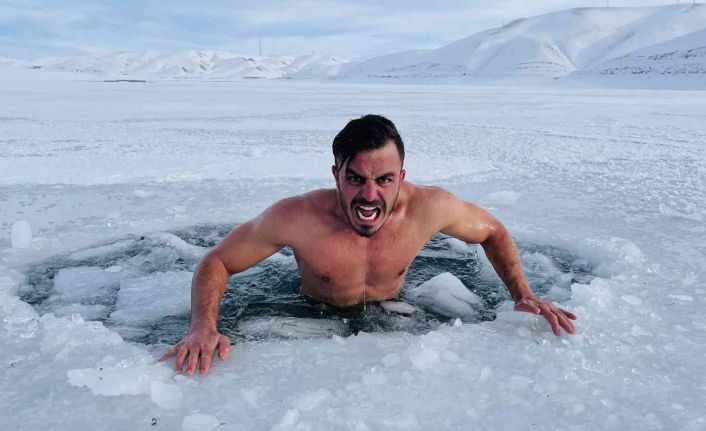 Çılgın fenomen buz tutan Van Gölü’ne daldı, hipotermi tehlikesi geçirdi