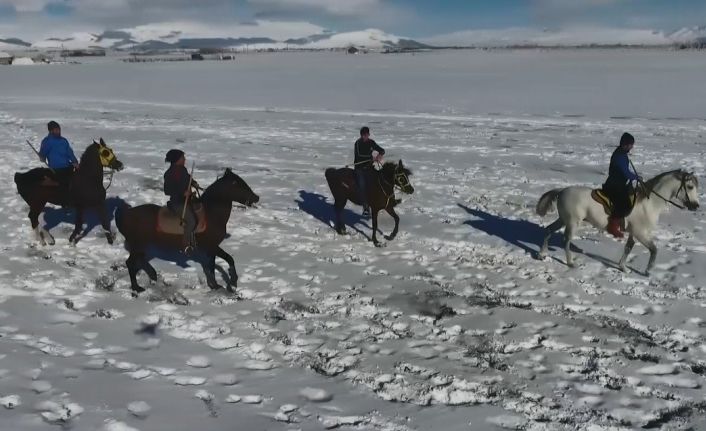 Erzurum’da at üzerinde yapılan cirit sporu asırlardır yaşatılıyor. Kıyasıya mücadelelerin verildiği yarışmalarda ter döken atlar ve sporcular yarışlar öncesi çarşaf gibi kar üzerinde antrenmanlarını sürdürüyor.