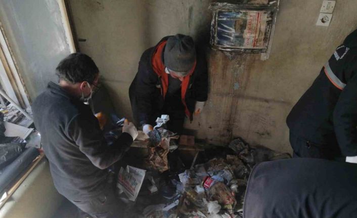 Uşak’ta kötü koku sebebiyle bir binaya giren belediye ekipleri, evin içerisinde gazete, pet şişe ve kirli kıyafet gibi 10 kamyon çöp topladı.