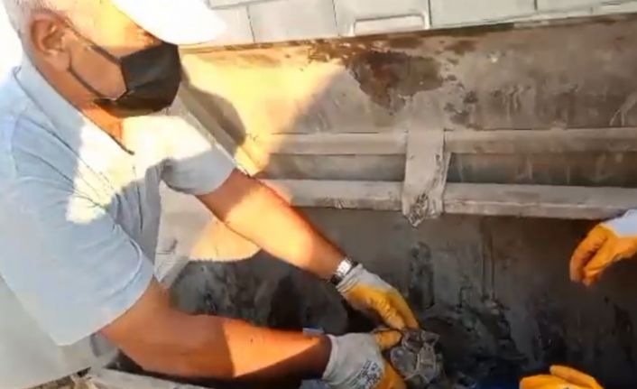 Çöpe atılan kaplumbağayı belediye personeli kurtardı