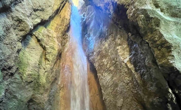 Çorum’da kayaların arasında yılın belli döneminde akan şelale ziyaretçilerini hayran bırakıyor.