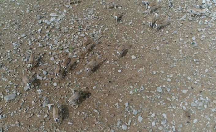 Şırnak Cudi Dağına bırakılan nesli tükenme tehlikesi altındaki ’Gazella subgutturosa’ türü ceylanlar, drone ile havadan görüntülendi.