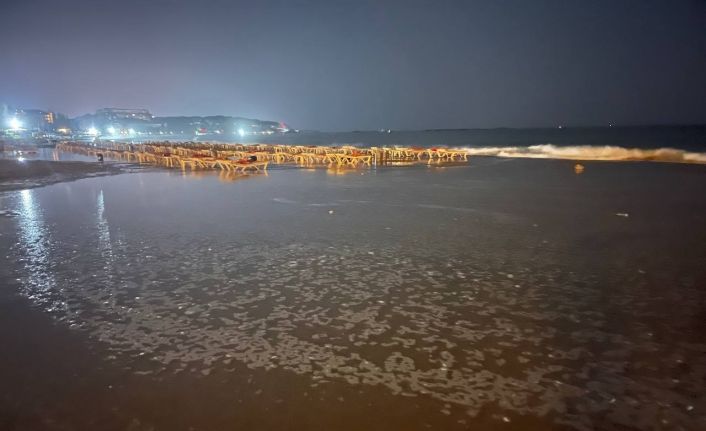 Alanya ilçesi İncekum Plajı dün gece saat 01.00 sıralarında sular altında kaldı. Güneyden esen rüzgarın etkisiyle oluşan dalgalar, plajın neredeyse tamamını sular altında bıraktı. Plaja ait şezlonglar ve yataklar dalgalardan dolayı zarar görürken, haberi alıp plajına gelen işletmeci Recep Erdoğan gördüğü manzara karşısında şoke oldu.