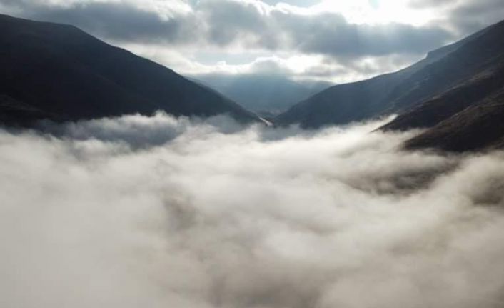 Dağlık bölgelerde etkili olan sis, ulaşımda herhangi bir aksaklık yaşatmazken; kartpostallık manzaralar oluşturdu.