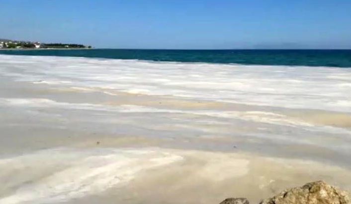 Marmara Denizi’nde etkisini gösteren ve balıkçıları zora sokan deniz salyaları Tekirdağ Şarköy’de sahili beyaza çevirdi.