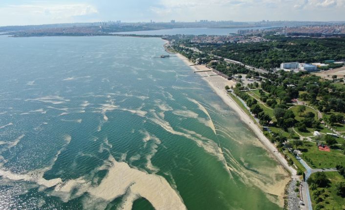 Marmara Denizini etkisi altına alan deniz salyası olarak bilinen müsilaj bu kez Bakırköy kıyılarını sardı. Sahilde deniz salyası ile oluşan tabaka, drone ile görüntülendi.