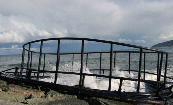 Kopan kafesi parçalanmaması için kurtarmaya çalıştıklarını ancak hava şartlarının buna müsaade etmediğinin altını çizen Koçal, “Tekneyle almayı düşündük ama dalgadan dolayı riskli olduğu için yaklaşamadık. Halatlarla yukarıya çekmeye çalıştık. Büyük malzeme olduğu için çekilemiyor. 5-6 kişi asıldık ama olmadı. Sahil Güvenlik’e haber verdik. Geldiler, raporlarını tutular, tesis sahibine ulaştılar. Şuanda da beklemede, dalga bittikten sonra alınacak” şeklinde konuştu.