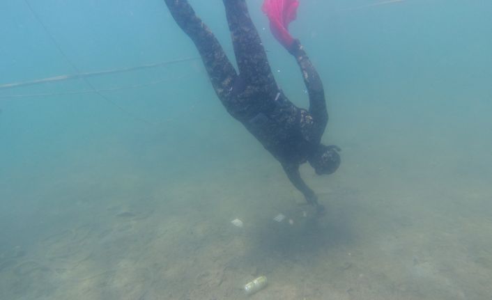 Bodrum Belediyesi tarafından sürdürülen deniz dibi temizliği devam ediyor. Ekipler 2 saatlik çalışma ile deniz dibi temizliğinde denizden 1 ton atık çıkardı.