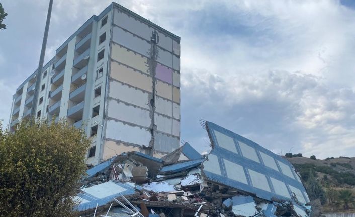 Depremde ağır hasar alan binaların dinamitle yıkımına başlandı