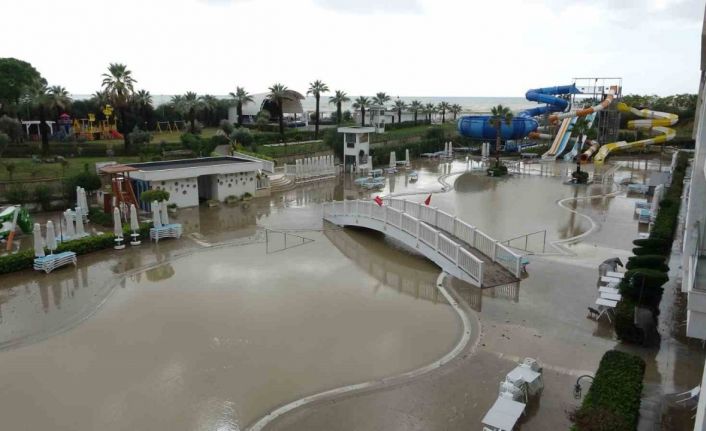 Manavgat ilçesinde sabah saatlerinde etkili olan sağanak yağış, olumsuzlukları beraberinde getirdi. Gündoğdu turizm bölgesinde faaliyet gösteren 5 yıldızlı Diamond De Luxe Hotel & Spa’nın başta havuz bölümü olmak üzere, zemin katta bulunan restoran, hamam, spa, mutfak, soğuk hava deposu, jeneratör ve işletmeleri sular altında kaldı.