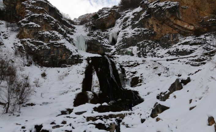 Kayseri’nin Yahyalı ilçesinde bulunan Derebağ Şelalesi’nde yağan kar ile beraber güzel görüntüler ortaya çıktı.