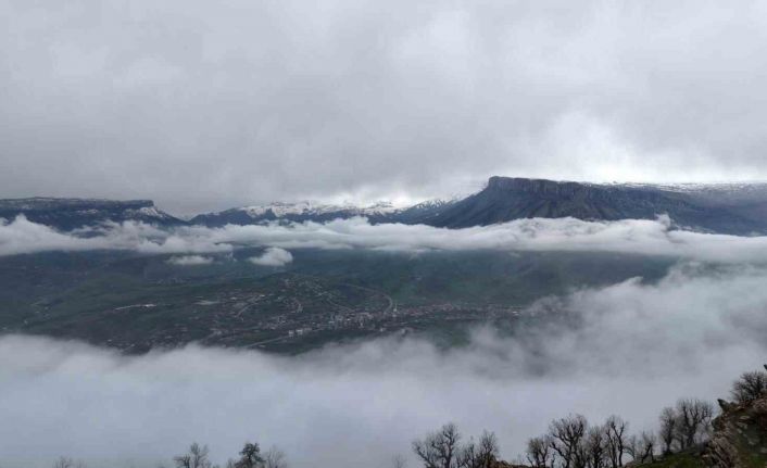 Baharın en erken hissedildiği ilçelerden biri olan Derecik’te, yağışların ardından doğa yeniden canlandı. İlçe genelinde devam eden yağmur, özellikle yüksek kesimlerde sise neden oldu. Sabah saatlerinde ilçe merkezi ve çevresindeki dağların yoğun sisle kaplandığı görülürken, güneşin zaman zaman yüzünü göstermesiyle ortaya eşsiz görüntüler çıktı. Dağların üzerine çöken sis tabakası, beyaz bir örtüyü andırarak doğaseverlere görsel şölen sundu.