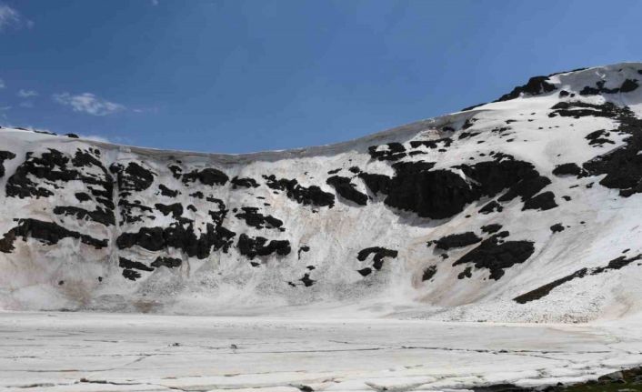 Şırnak’ta bulunan doğal göl bahar aylarında bile buz pistine döndü. 3 bin rakımdaki göl soğuk havaların etkisiyle 7 ay buz pistine dönüşüyor.