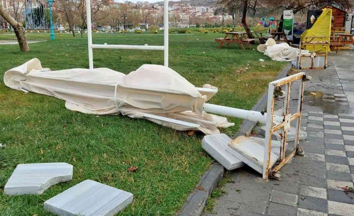 Tekirdağ’da 2 gündür devam eden şiddetli lodos sebebiyle sahil kenarında bulunan kafelerin dev şemsiyeleri devrilirken, mermer taşları da yerinden oynadı. Ayrıca sahile taşan deniz suyu ise geri çekildi.