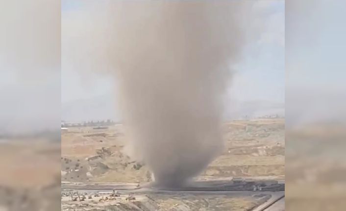 KAHRAMANMARAŞ’IN AFŞİN İLÇESİNDEKİ KÖMÜR SAHASINDA OLUŞAN DEV HORTUM, HELİKOPTERDEN GÖRÜNTÜLENDİ.