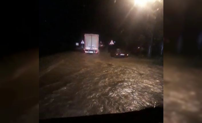 Zonguldak’ın Devrek ilçesinde yağan şiddetli yağmur nedeniyle dereler taştı, vatandaşlar araçları ile yolda büyük mücadele verdi.
