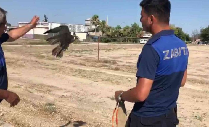 Cumhuriyet Mahallesi’nde devriye gezen zabıta memurları Donuktaş Tapınağı önünde boş bir arsada kuş sesi duydu. Araçtan inen zabıta komiseri Hakan Öcal ile zabıta memuru Ali Gözüküçük, bir doğanın ayaklarından direğe bağlı olduğunu gördü. Zabıta memurları ilk olarak kuşu direkten kurtardı, daha sonra bağlanmış olan ayaklarını ipten kurtardı. Hayvansever zabıta memuru Ali Gözüküçük, su verdikten sonra kuşun herhangi bir yarası olmadığını görünce kuşu doğaya salıverdi.
