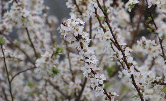 İlçede son günlerde bir gün yaz, bir gün kış havasının yaşandığına da dikkat çeken Keskin, "Bu durumdan bahçelerimiz istifade etti. Ağaçlarımız çiçek açtı, inşallah çok güzel bir hasadımız olacak. İçeriye tozlaşma için bal arısı bıraktık. Aldığımız arılar çiçek çok olunca yeterli gelmedi. Bunun üzerine arkadaşlarımızdan bir kovan bal arısı daha getirdik içeri koyduk, şu anda yetiyor. İlaç vermeden arı tozlaşmasıyla doğal olarak yetiştiriyoruz" diye konuştu.