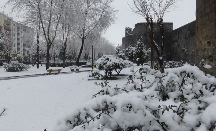Diyarbakır’da dün gece saatlerinden itibaren aniden bastıran kar yağışı şehri bir anda beyaza bürüdü. Yoğun kar yağışı sebebi ile hayat durma noktasına gelirken, UNESCO Dünya Kültür Mirası Listesi yer alan tarihi surların etrafındaki parklar beyaza büründü. Beyaza bürünen parklarda bazı vatandaşlar çocukları ile birlikte öz çekim yaparak anı ölümsüzleştirdi.