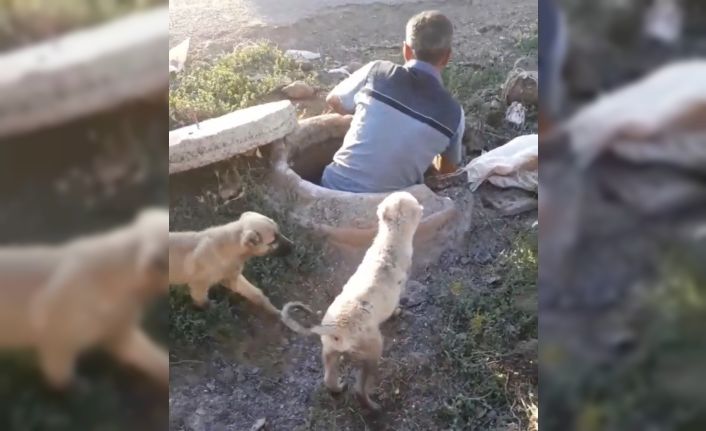 Diyarbakır’ın Sur ilçesinde kanalizasyon çukuruna düşen yavru köpek, bu sırada bölgeden geçen bir kişi tarafından bulunduğu yerden çıkarıldı.