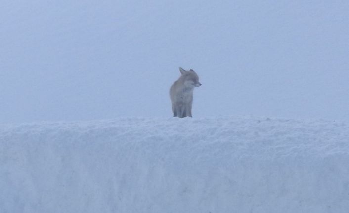 Tunceli’de yoğun kar yağışı nedeniyle yiyecek arayan tilkiler, doğaya yem bırakan görevlileri beklerken görüntülendi.
