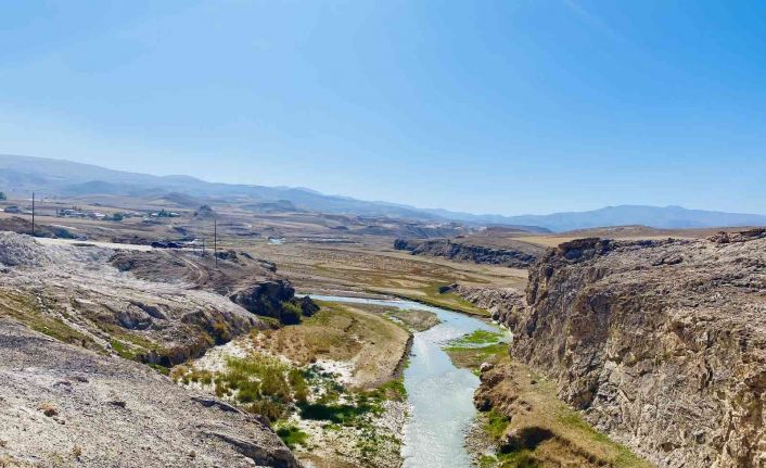 Ağrı’nın Diyadin ilçesinde doğal köprü olma özelliği ile tanınan Kudret Köprüsü manzarasıyla büyülüyor.