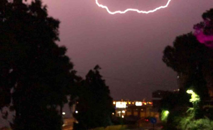 Gecenin sessizliğini bozan yıldırımın düşme anı, bölgede doğa fotoğrafçılığı yapan Kerim Okumuş’un cep telefonuna yansıdı.
