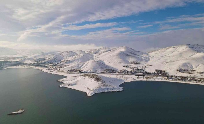 Elazığ’da doğunun gizli denizi olarak bilinen Hazar Gölü’nde kış güzelliği, seyrine doyum olmayan manzaralar sunuyor.