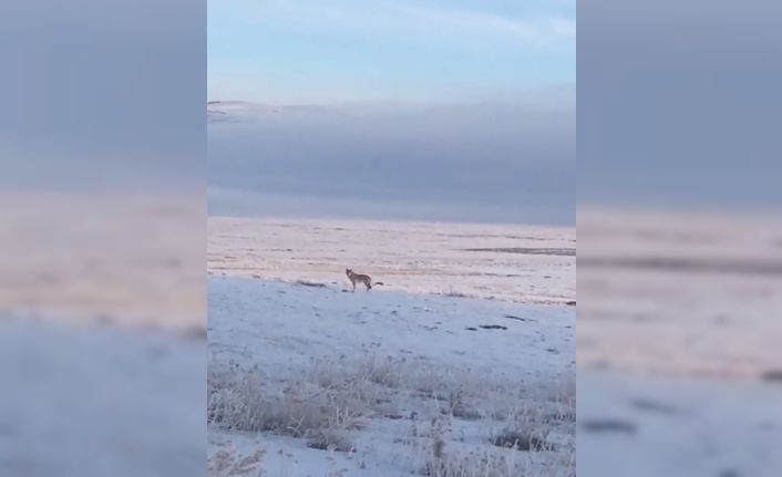 Kar yağışının ardından etkili olan dondurucu soğuklar nedeniyle Ardahan’da aç kalan kurt, Ardahan Ovası’na indi.