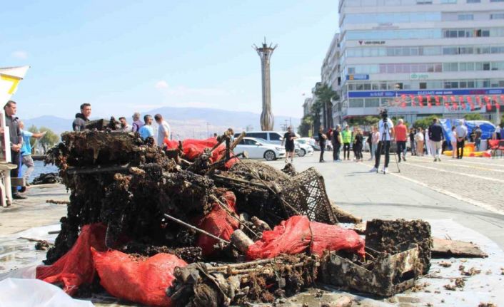 İzmir’de gerçekleştirilen 5 Haziran Dünya Çevre Günü etkinliklerinde körfezde polis ve Sahil Güvenlik ekipleri temizlik etkinlikleri yaparken, körfezden çıkartılan atıkları gören çocuklar duyarlılık mesajı verdi.