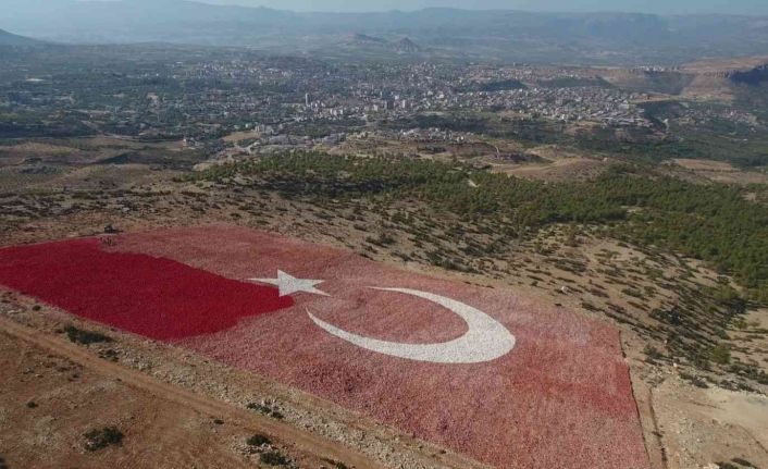 22 dönümlük dev Türk bayrağını boyama çalışmalarının Ekim ayı sonunda tamamlanması hedefleniyor.
