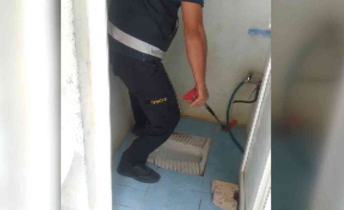 Adıyaman’da bir evin tuvaletinde musluk borusunun geçtiği deliğe giren yılan, itfaiye ekipleri tarafından çıkartıldı.
