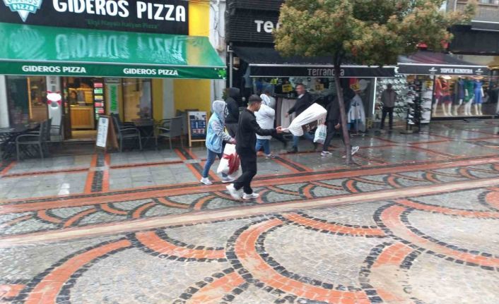 Bayram alışverişine çıkan vatandaşlar yağışa hazırlıksız yakalanırkne, bazı vatandaşlar da iş yerleri ve binaların altında mahsur kaldı.